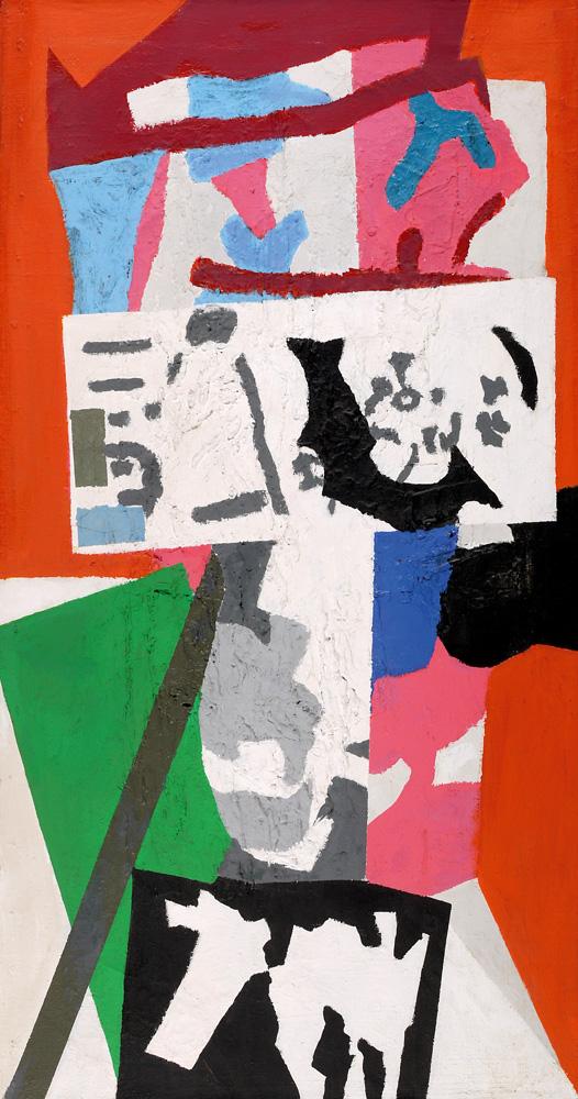 Haim Kiewe, Israeli Art, 1912 - 1983, Postcard, 1975, Acrylic on canvas, 117x63cm, Signed on the reverse., Gideon Ofrat, Chaim Kiewe, Koren Publishers, Jerusalem, 1989, p. 133, illustrated., , , ,