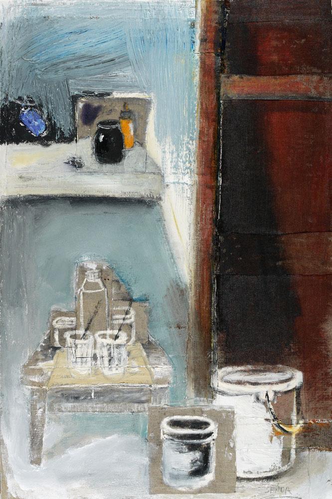 Haim Senior, Israeli Art, B. 1972, Still Life in the Studio, Oil on canvas, 119x80cm, Signed., , , , ,