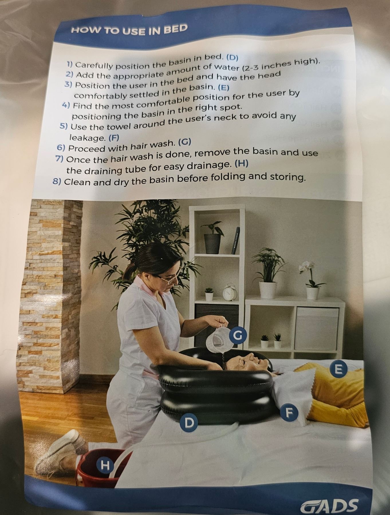 Gads Inflatable Hair Washing Basin, Great For Elderly, Bedridden, Post Surgery, Includes Basin, Towel, Comb, And Carry Pouch, Brand New