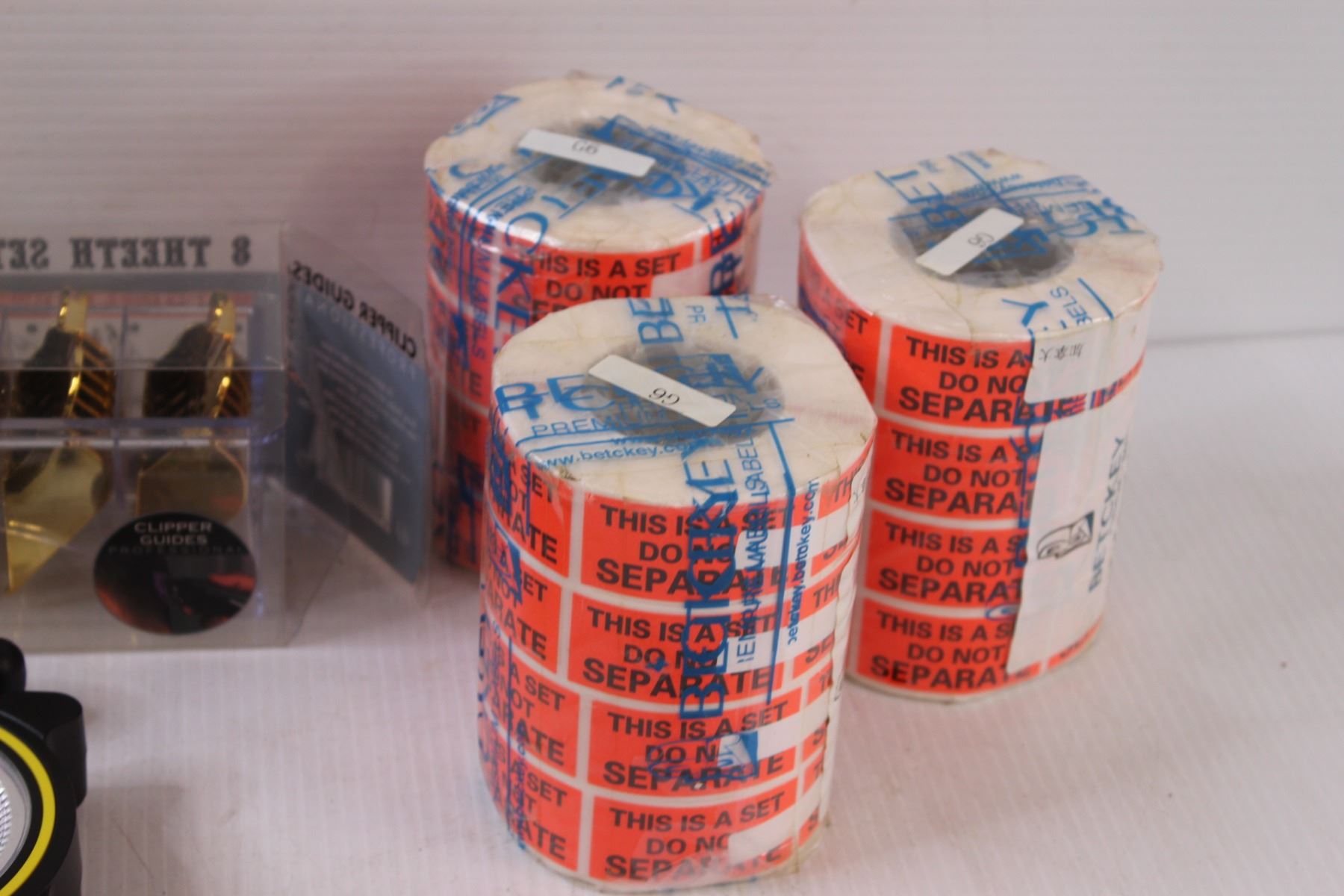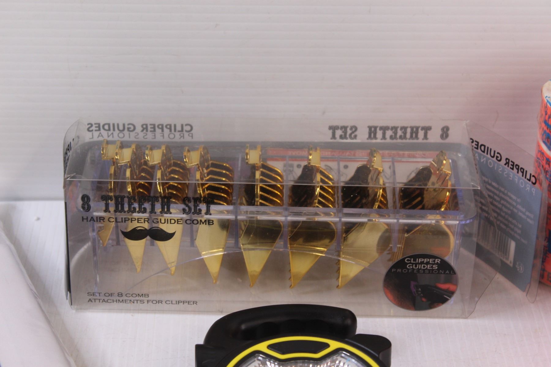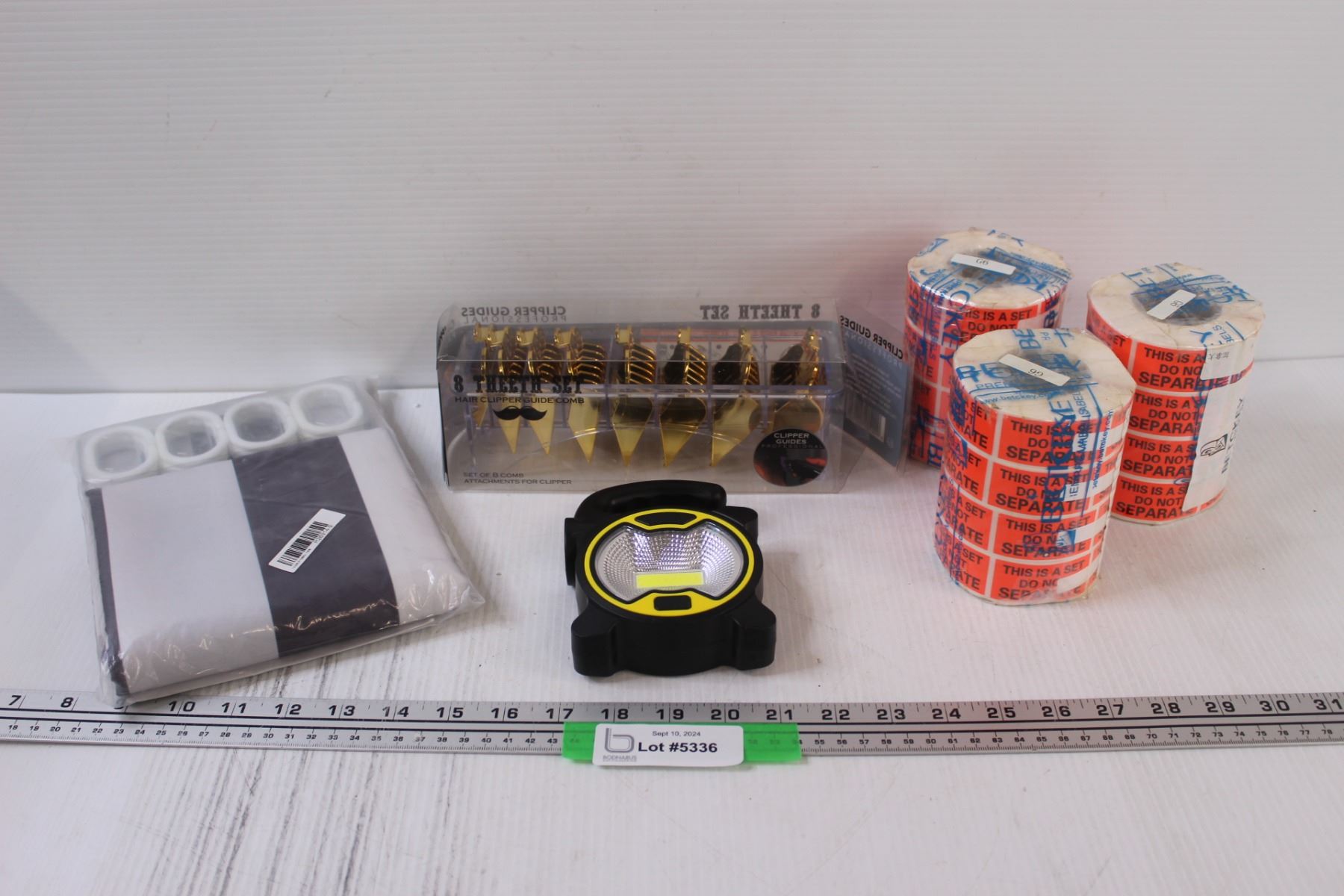 Hair Clipper Teeth Set, Shower Curtain, Battery Operated Light, (3) Rolls of Shipping Labels