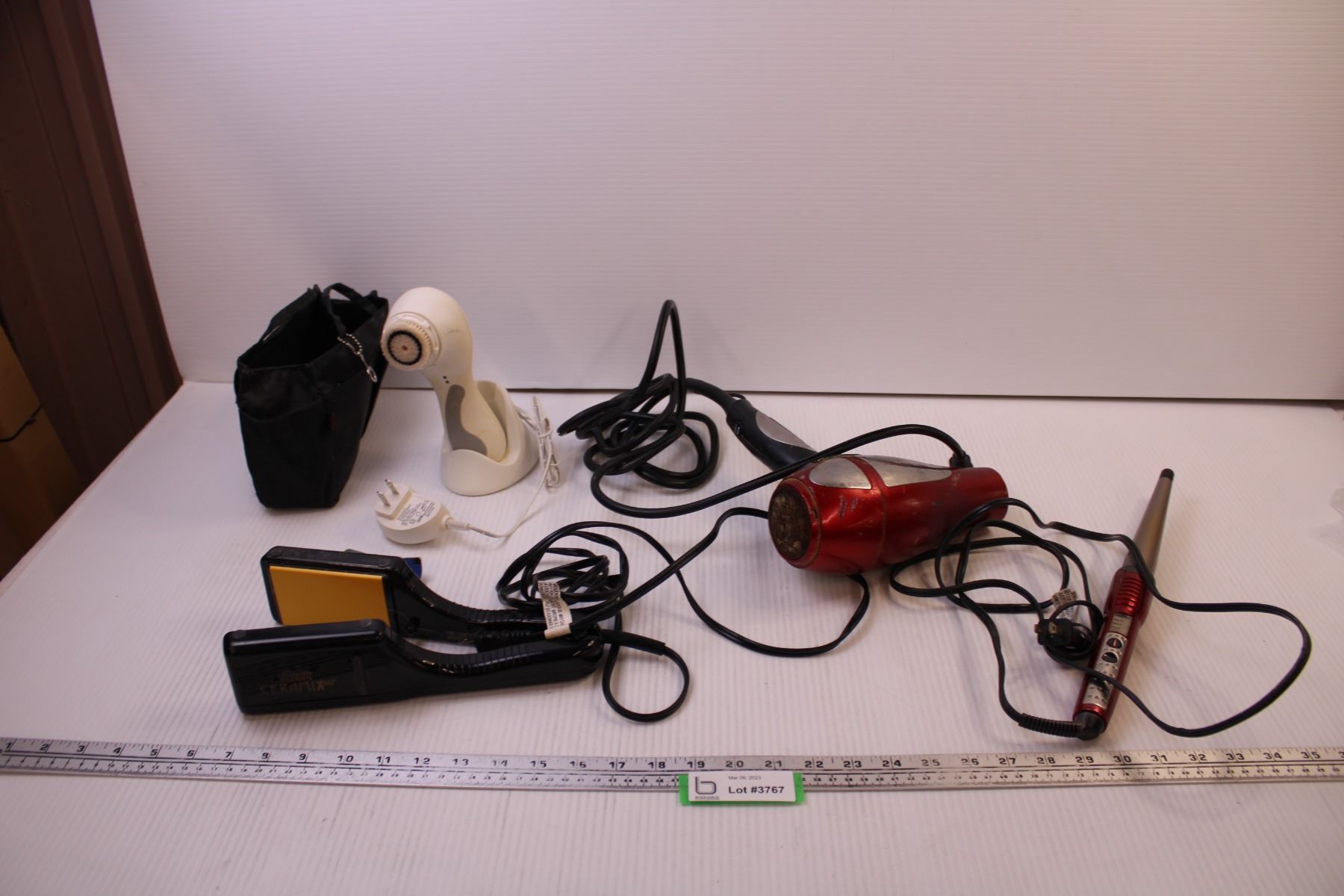 Hair Straightener, Blow Dryer, and Curling Iron (All Work) + Face Clenser (Untested)