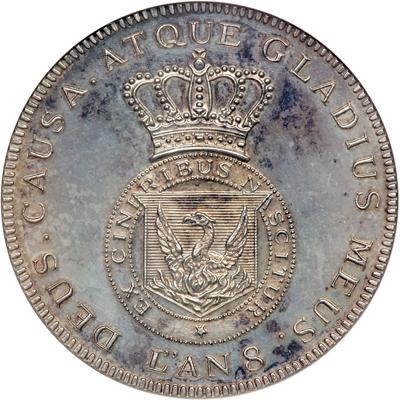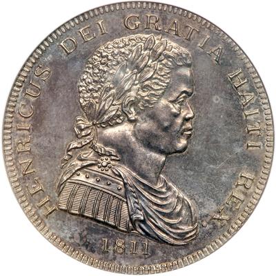 Haiti. Pattern Silver Restrike Crown, 1811/L'AN 8. KM-Bruce X#12. King Henri. Laureate armored bust right. Reverse: Crowned shield with rising phoenix. Toned. NGC graded Proof 62.