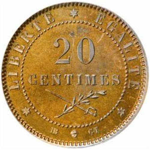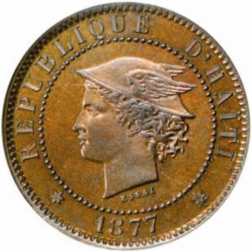 Haiti. Republic (1863-). Copper or Bronze Pattern Essai 20 Centimes. 1877.