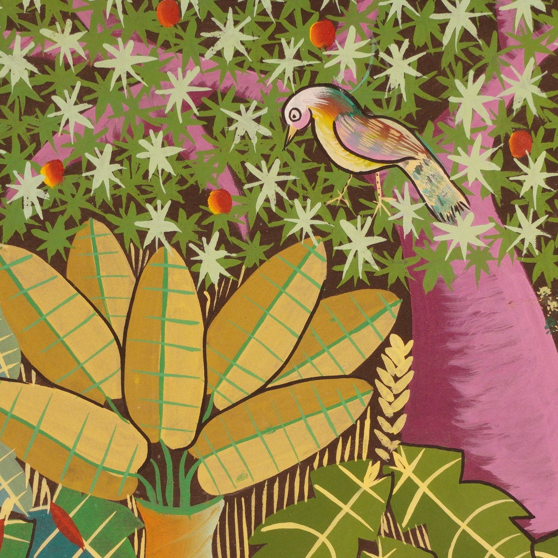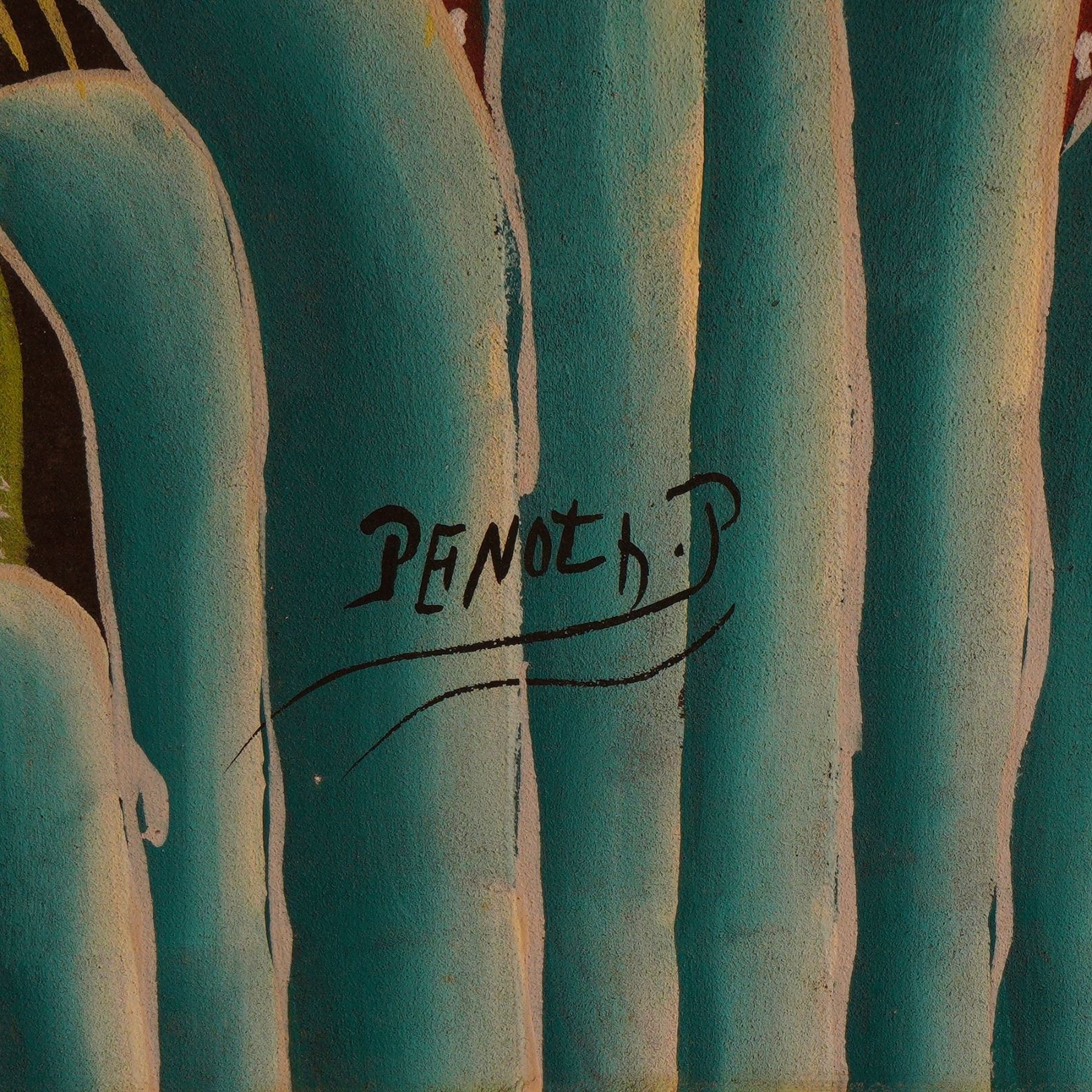 Haitian Acrylic on Linen Board Painting, Jungle Scene, Signed Penoth