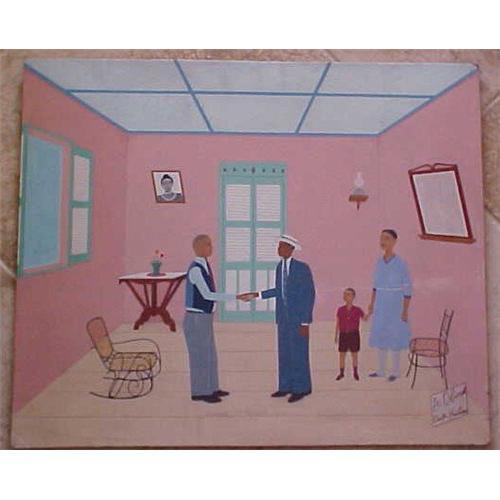 About the Artist: ANTOINE OBIN. (1929-1998) Antoine Obin. Cap-Haitien 1929-1998. Joined Centre d?art in 1946. The youngest son and pupil of Philome Obin, Antoine Obin began painting seriously at age seventeen. He was trained by his father, and his style is similar to the older man?s. Antoine enjoys depicting amusing episodes or scenes from his own family?s daily life, stressing their close family bonds with pride. Depending on the mood of the story portrayed, his palette can be soft and gentle or strong and warm