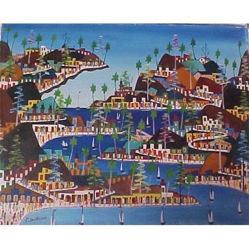 Haitian Painting acrylic on Canvas by the artist Cemoin Souffrant. The Painting is 16" x 20" and is unstretched and unframed. The painting will be shipped rolled.