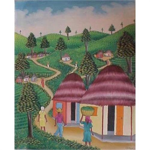 Haitian Painting on Canvas by E. Edouard. Painting is 16" x 20". It is unstretched, unframed and will be shipped rolled.