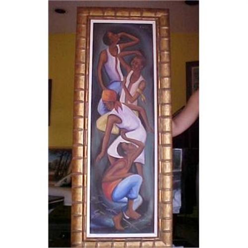 Haitian Painting in acrylic by Edouard Wah, dated 1978. The Painting is 12"x40" and is professionally framed. The painting is in very good condition: