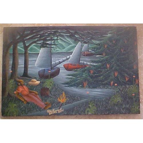 Haitian Painting oil on Canvas by the artist Elder Laurent. The Painting is 16" x 24" and is unframed.