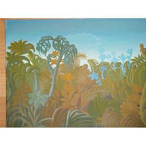 Haitian Painting oil on Canvas by the artist Ernst Jean Louis 1981. The Painting is 16" x 20" and is unframed.