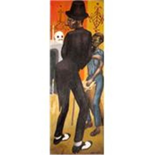 "Baron Samedi" by Rene Exume (Petionville, b. 1929). 39 x 14, Oil on Canvas. Though a well respected first generation master, Rene Exume, my uncle and godfather, never worked with art galleries as was the case with most Haitian artists from the 50's to 70's. Because he was fairly well off and always thought galleries only commercialized and ripped off the poor artists, he made a commitment to ONLY deal directly with collectors, such as Jonathan Demme, Bill Cosby, Samuel L. Jackson, to name a few. Consequently, his work is rarer and is, therefore, more prized by the pickiest of Haitian art collectors.