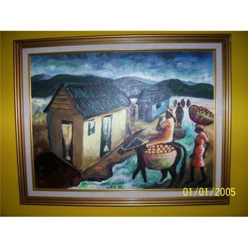 "Returning Home" by Rene Exume (b. 1929). This 16 x 24 beauty is oil on canvas. It was exhibited at the Haitian Embassy in Washington, DC from December 28, 2006, to January 5, 2007. Letter from the Haitian ambassador will accompany this painting.