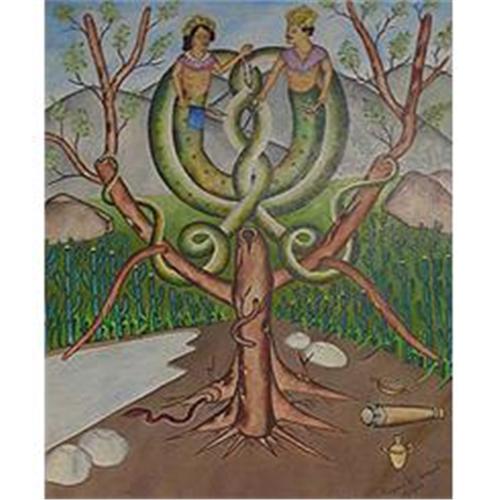 "Lwa" by Haitian Master Rigaud Benoit (Port-au-Prince: 1911-1986); circa 1967. 28 x 20; This monumental work is most certainly the best Benoit on the market at the moment!!! In fact, it rivals most Benoit masterpieces in the best museum collections. The purchaser of this work should not be a shy collector, as this will avail him or her to the Absolute Carte Blanche of Bragging Rights in the World of Serious Haitian art collecting. This is certain to garner bids from the most serious and sound Haitian collectors. Good luck!