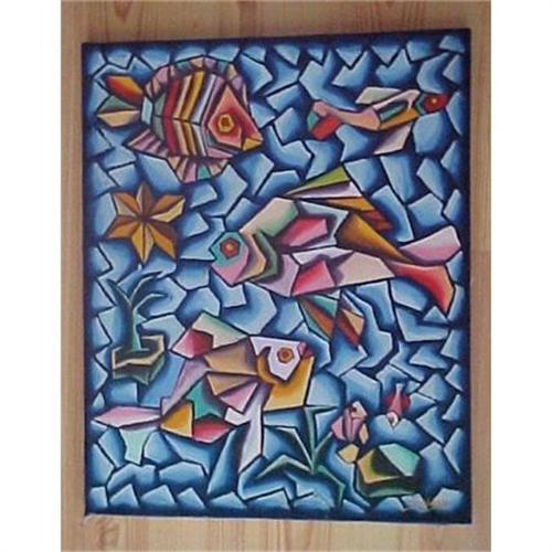 About the Artist: Joseph Wilfrid Daleus: Born in Port-au-Prince, Haïti on Noverber 20, 1949, he started painting at the age of 10. A self-taught artist, Daleus as everyone calls him, has no formal training in art. He can never predict what his next painting will be. His inspiration usually comes from his dreams. He creates a fusion of naive, primitive, impressionism, surrealism, abstract, realism and classic. In 1988, Daleus worked for the Musée d’Art Haïtien restoring old Primitive paintings of Philome Obin, the master of the prestigious school of naifs. His paintings have hung in many places such as the Topen Museum in Amsterdam, The Brooklyn Museum in New york, the Musee du College St Pierre in Port-au-Prince, the MUPANAH in Port-au-Prince, and the Cornell Museum in Delray Beach Florida.