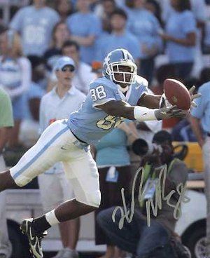 After a standout football career as a Wide Receiver at the University Of North Carolina, Hakeem Nicks was selected by the New York Giants with the 27th overall pick in the 2009 NFL Draft. Nicks stats at UNC were stellar, catching 181 passes for 2840 yards and 21 Touchdowns. Nicks adds size and speed to Giants team in need of playmaker. Hakeem Nicks has hand signed this University of North Carolina touchdown 8x10 photograph. Certificate of Authenticity from Athlon Sports.