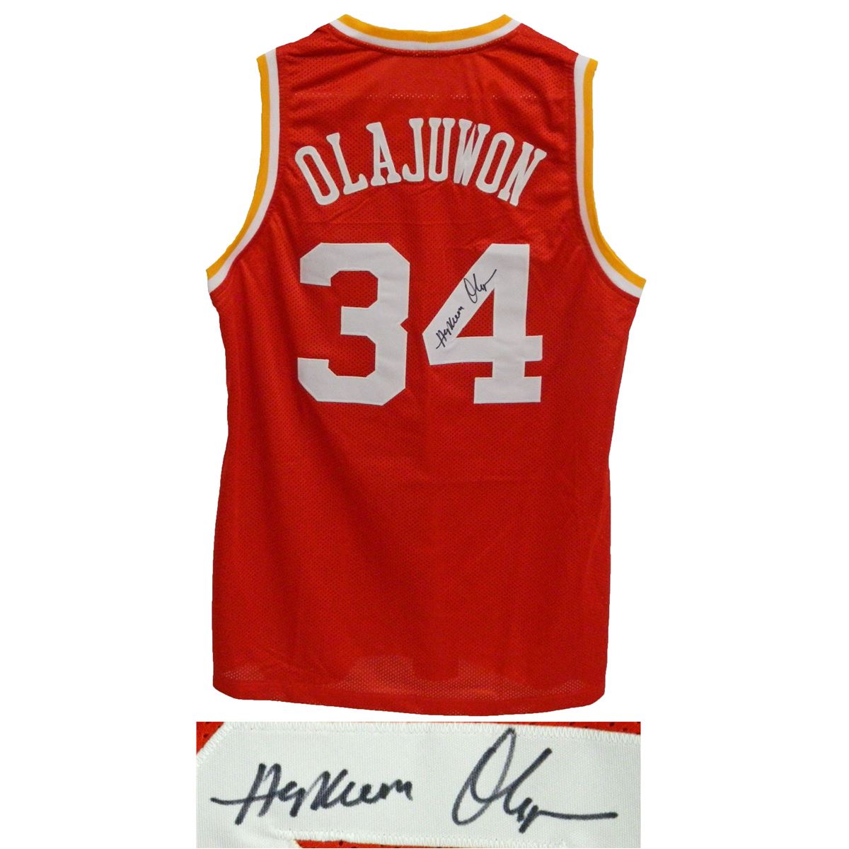 Hakeem Olajuwon signed red custom basketball jersey. Item comes with a Schwartz Sports Memorabilia tamper-proof numbered hologram and Certificate of Authenticity which can be verified online.