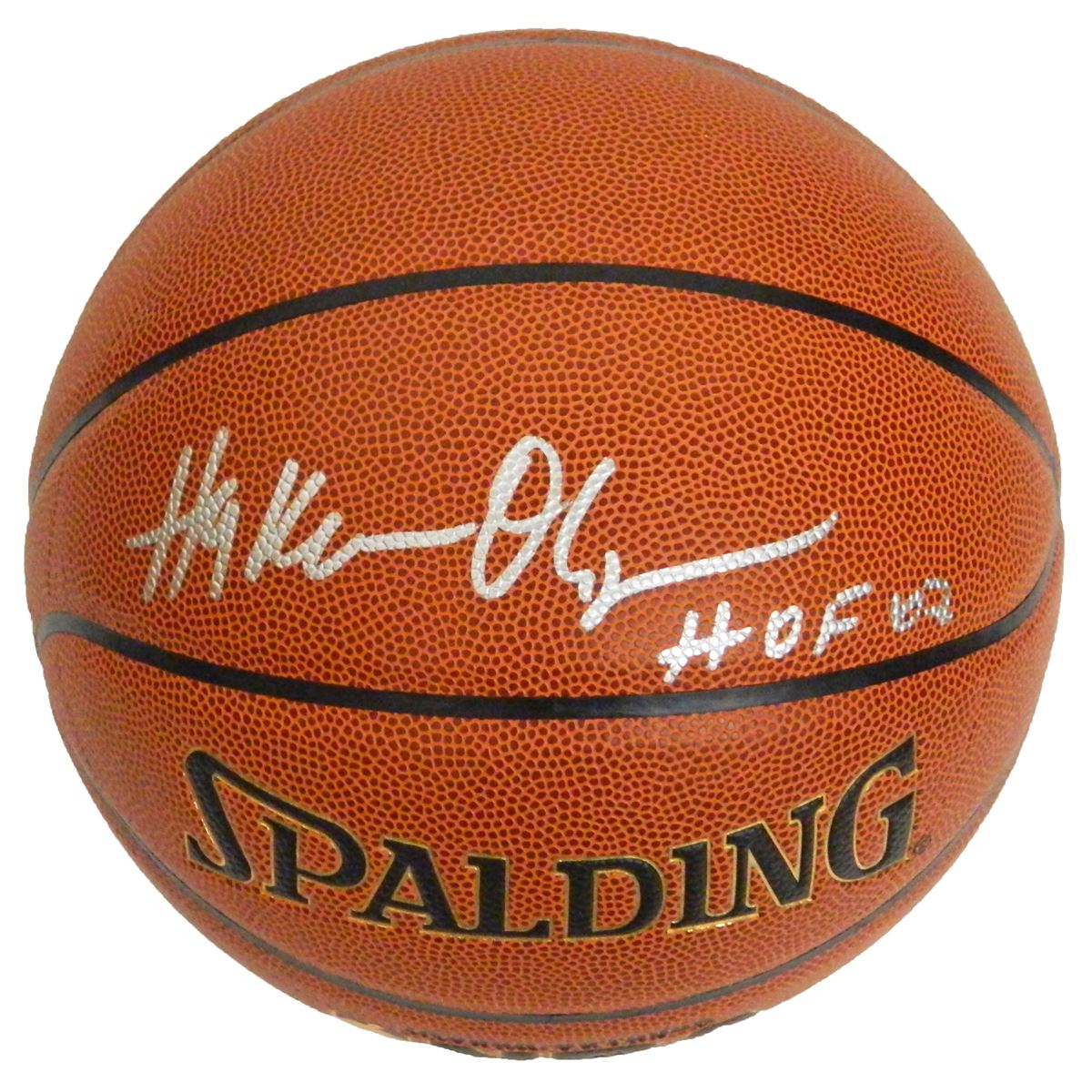 Hakeem Olajuwon signed Spalding NBA Indoor/Outdoor basketball with 'HOF 08' inscription. Item comes with a Schwartz Sports Memorabilia tamper-proof numbered hologram and Certificate of Authenticity which can be verified online.