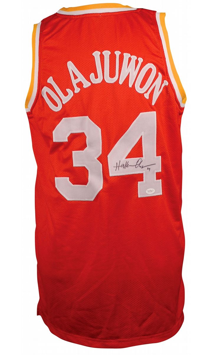 Replica Houston Rockets basketball jersey, with sewn on letters and numbers, signed in black felt tip on the number on the back. In fine condition, with a James Spence authentication label affixed to number. Accompanied by a certificate of authenticity from James Spence.