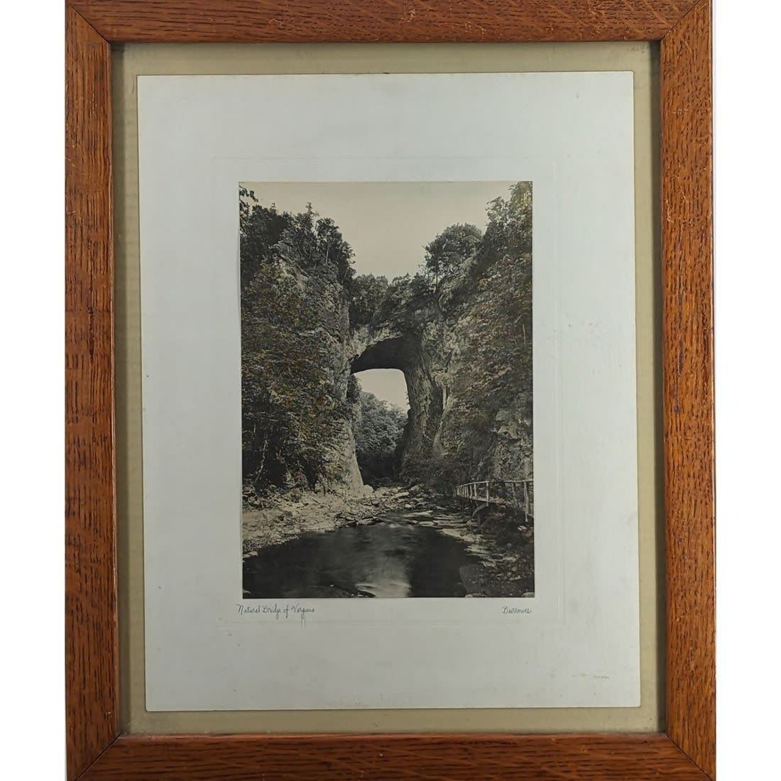 Hal Burrowes (American, 1880-1926) Pencil-Signed Photograph "Natural Bridge Of Virginia" 1920s. Maine artist. Measures approx. 22 1/2" X 18 1/4", Sight measures approx. 11 3/4" X 8 1/4".