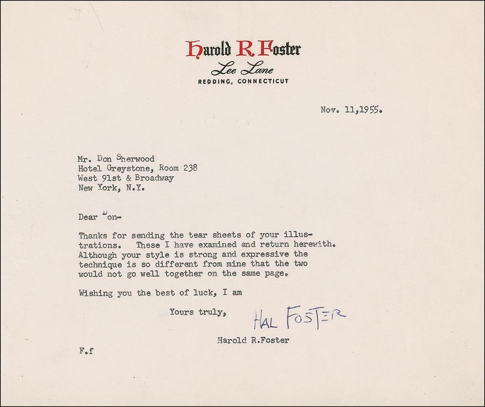 TLS, one page, 8.5 x 7.25, personal letterhead, November 11, 1955. Letter to an aspiring cartoonist hoping for a collaboration. In part: “Although your style is strong and expressive the technique is so different from mine that the two would not go well together on the same page.” In very good condition, with several noticeable creases, and wrinkling to left edge. RRAuction COA.
