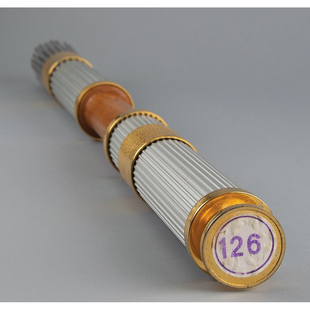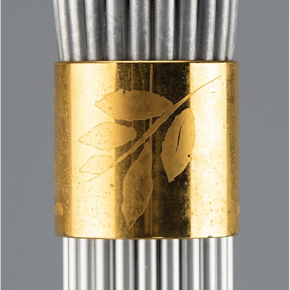 Medal conditions: light wear and marks. Torch condition: the bands bear some tarnishing, light bending to the upper reeds, the lower reed section slightly loose, and wear to the base, the underside of which bears a “126†label.