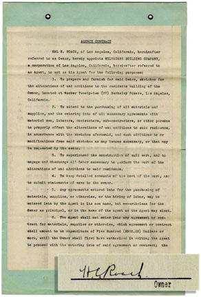 Hal Roach Studios 1921 Contract Signed ''H.E. Roach'' for Building Design -- 9'' x 14.25'' -- Near Fine Document From Golden Age Hollywood