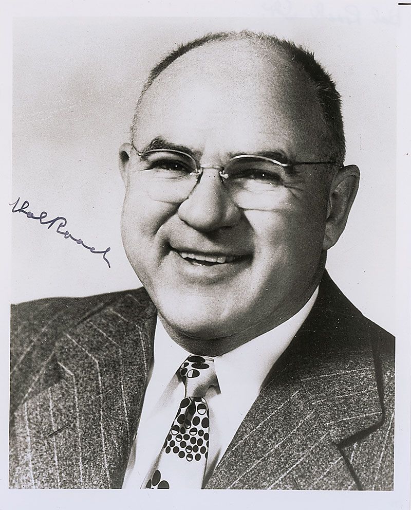 Successful American picture producer (1892–1992) best known for his association with Laurel and Hardy and the ‘Our Gang’ series of films. Jovial glossy 8 x 10 head-and-shoulders photo, signed in black felt tip. In fine condition.