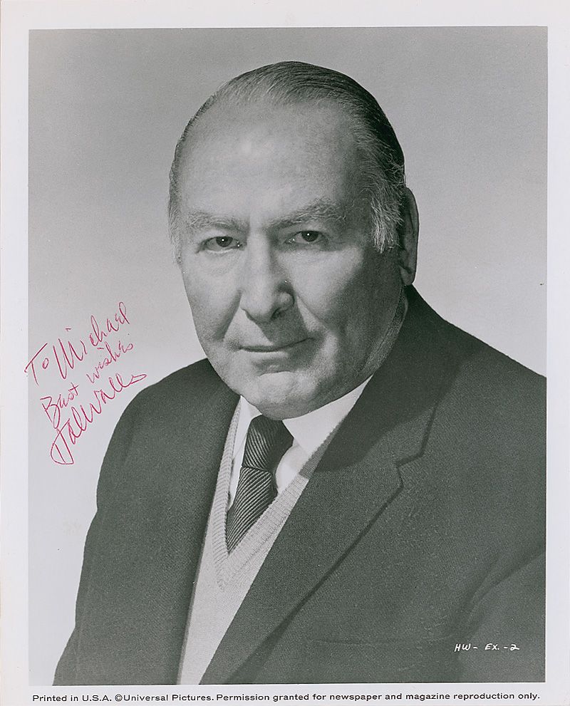 Glossy 8 x 10 Universal Pictures publicity photo, signed and inscribed in red ballpoint “To Michael, Best wishes, Hal Wallis.” In fine condition, with a few scattered creases and impressions.