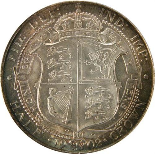 Half Crown 1902 PCGS MS-64. Attractive light golden amber toning with blues at the rims