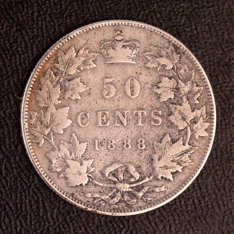 Fifty Cents, 1888, Obv. 2, VG, cleaned, corrosion.