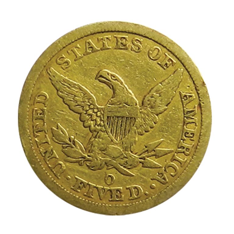 $5.00, 1846-O. Better date. Choice VF-EF, lt rb. Very scarce New Orleans issue.
