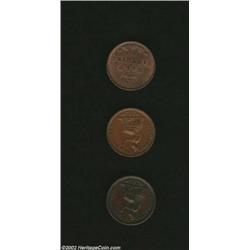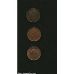 Half Farthing trio as follows: 1828, KM-704.1, XF; 1837, KM-724, XF/AU, a very scarce one-year type;
