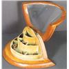 Half Moon Curved Glass Collar Button Display Case. Oak and glass, with velvet lined interior. 11 X 5 3/ X 6 inches.