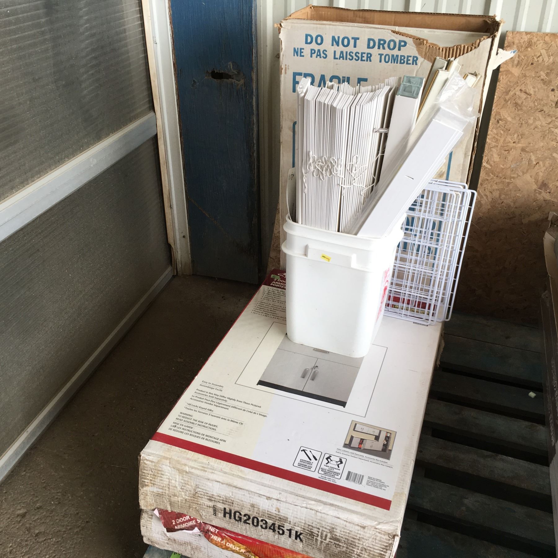 Half Pallet Lot: 3 Cabinets (Unassembled), Boxes & Blinds