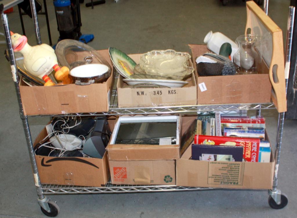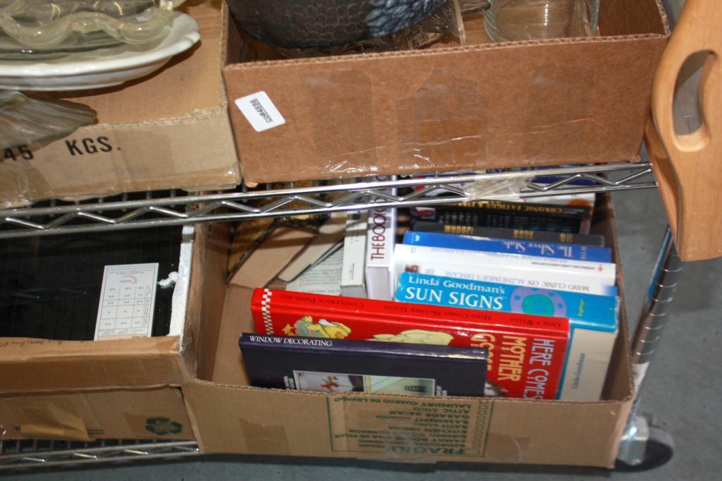 Half Rack Of Misc. Books, Glasses, Trays,