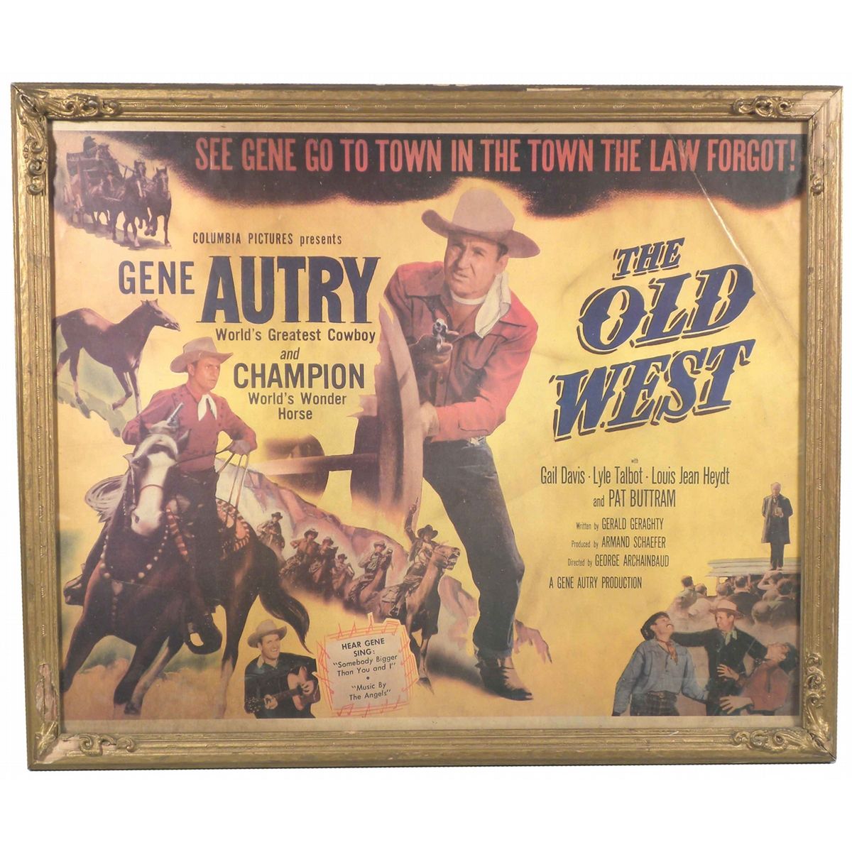 Half Sheet Movie Poster for "The Old West". Columbia Pictures presents Gene Autry, World's Great Cowboy and Champion World's Wonder Horse. Some age discoloration otherwise very good condition. 23 X 18 inches.