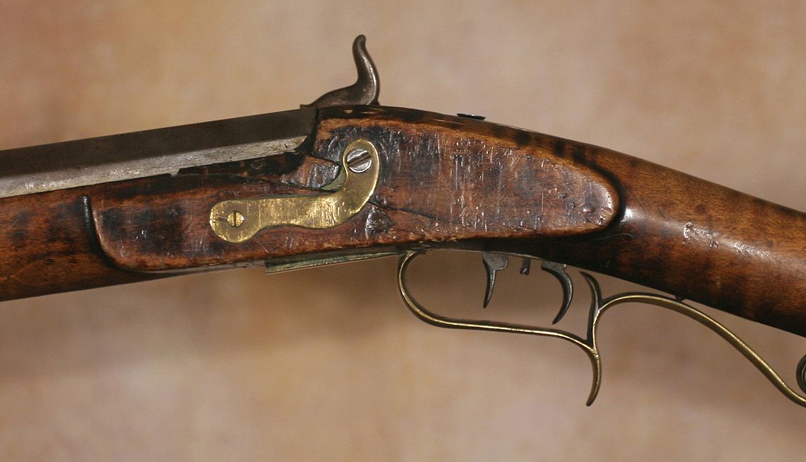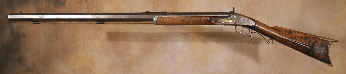 Half Stock Plains Percussion Rifle. 33" heavy octagonal barrel, .40 calibre. Top of the barrel is marked: A. YOUNG. J. HEFNER. MARCH 29,(indiscernible year) No. 140. Maple stock with brass patch box, adjustable set triggers and original sights. 19th century. (est. $2,000-3,000). CONDITION REPORTS: www.auctioninsantafe.com/docs/cr2012.pdf