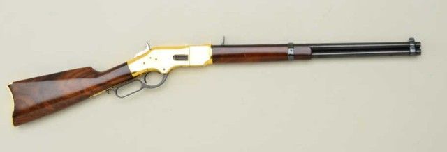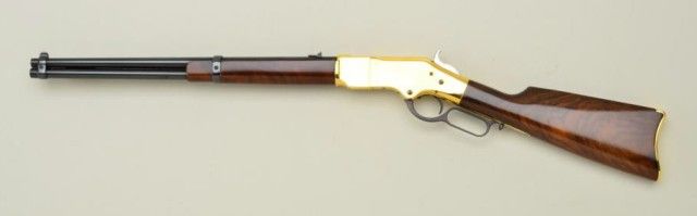 Half scale miniature model 1866 Winchester saddle ring carbine by Imperial Armory serial #238 with full barrel markings and quality detailing. Excellent condition, formerly Jerry Tralins collection. Est.;$1,500-$3,000.
