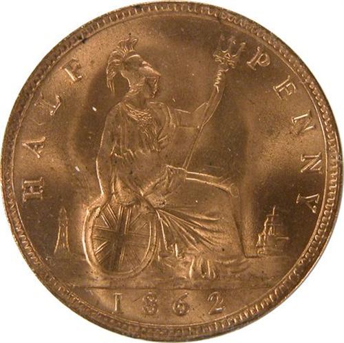 Halfpenny 1862 ICCS MS-65 Red. A very well struck piece with great lustre and near full red