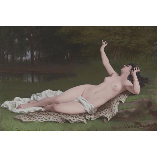 Halil (Turkish School), Reclining Nude, c.1884;oil/panel,9in. x 13in., signed and dated.