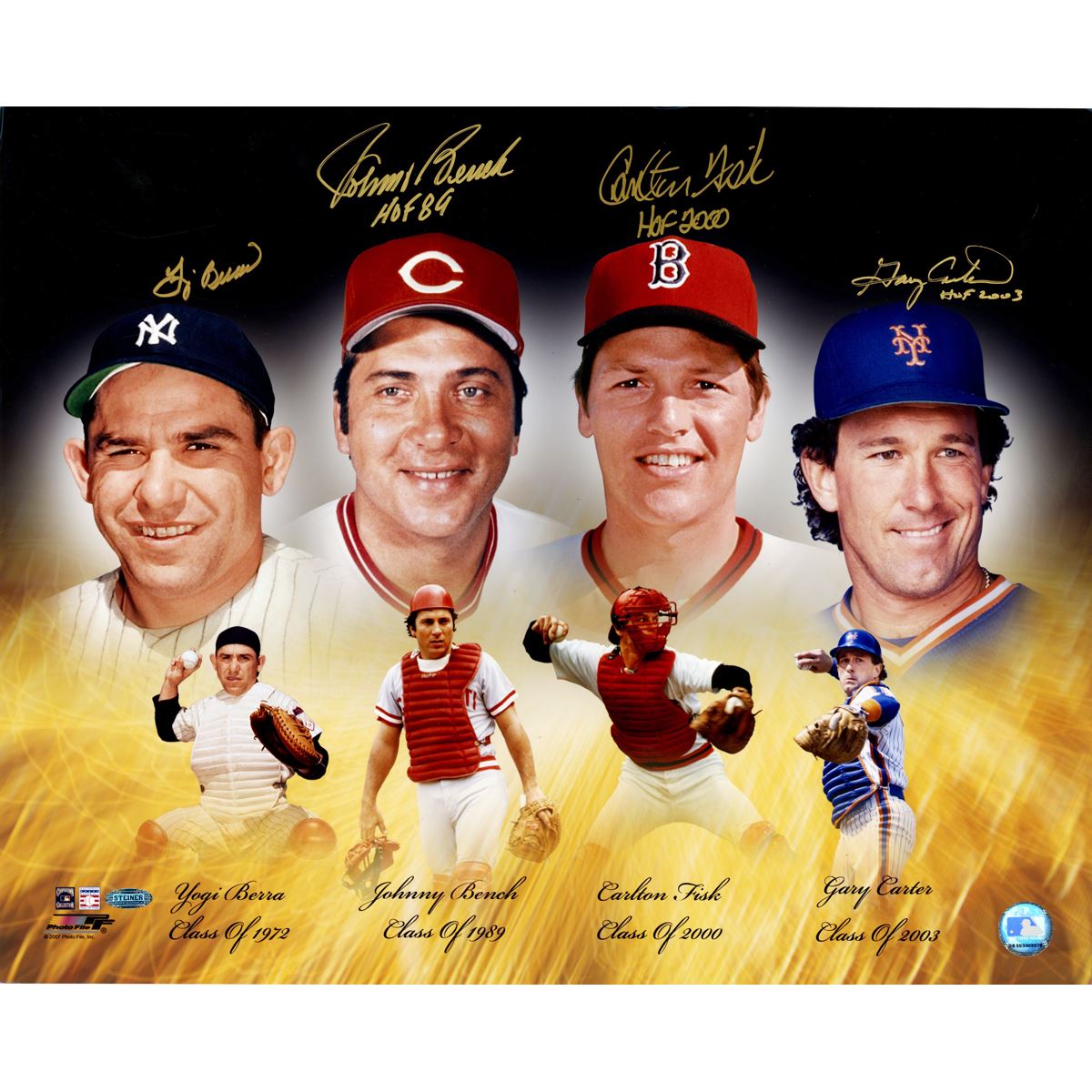 Hall of Fame Catchers (Yogi, Bench, Fisk, Carter) Signed 16x20 Photo w/ HOF insc by Carter, Bench and Fisk