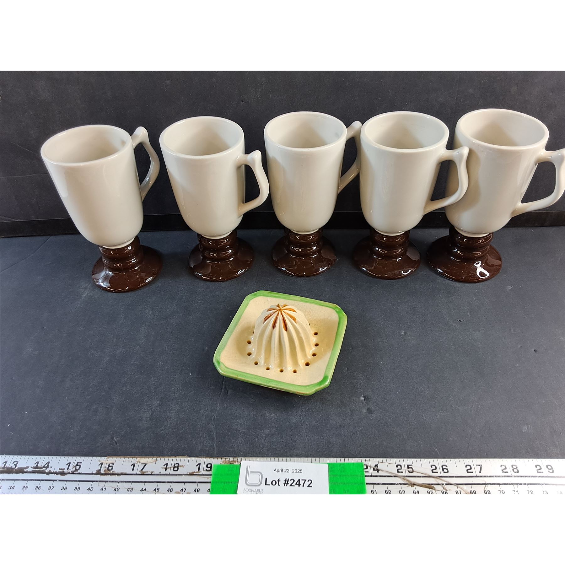 Hall Pottery Irish Coffee Mugs and Ceramic Juicer