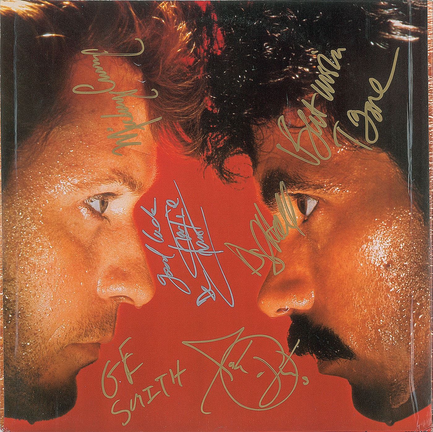 H2O album signed on the front cover in gold ink by Darryl Hall, John Oates, Tom 'T-Bone' Wolk, Mickey Curry, and G. E. Smith, and in silver ink by Charlie DeChant. In fine condition, with depressions along the two vertical seams. The record is included. Consignor notes that the signatures were obtained at the Fairlawn Hilton in Ohio during the band's H2O Tour.