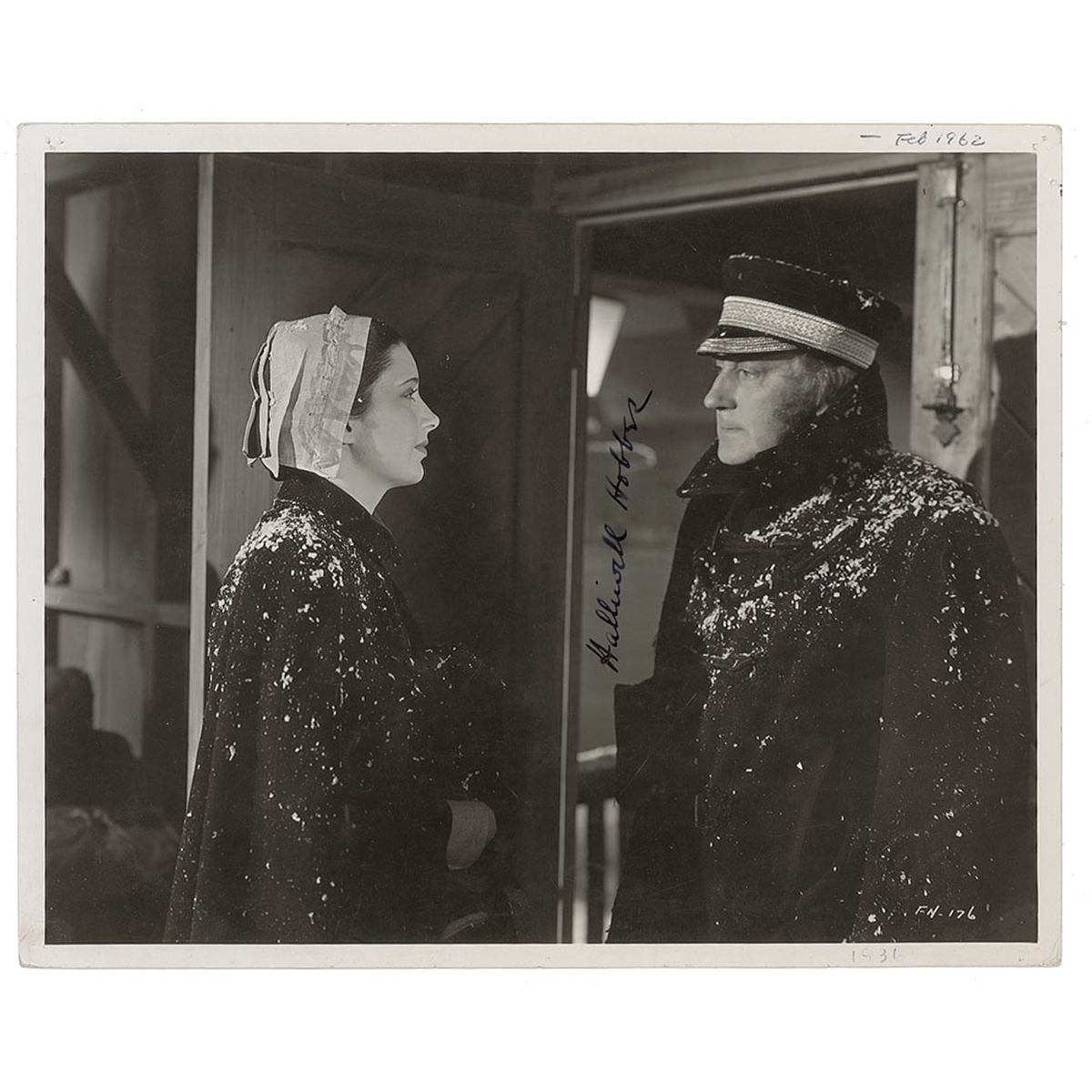 Vintage glossy 10 x 8 publciity photo from The White Angel, signed vertically in fountain pen. In very good condition, with a few scattered surface creases, a few small pin holes to the top corners, and the date “Feb 1962” penned in the top border in another hand. Stamp on reverse indicates photo came from Harry Wilkinson’s “Hollywood Amuseum of Memories,” Marblehead, Massachusetts.