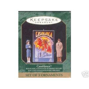 Set of 3 miniature ornaments: Humphrey Bogart, Ingrid Bergman & lobby poster
