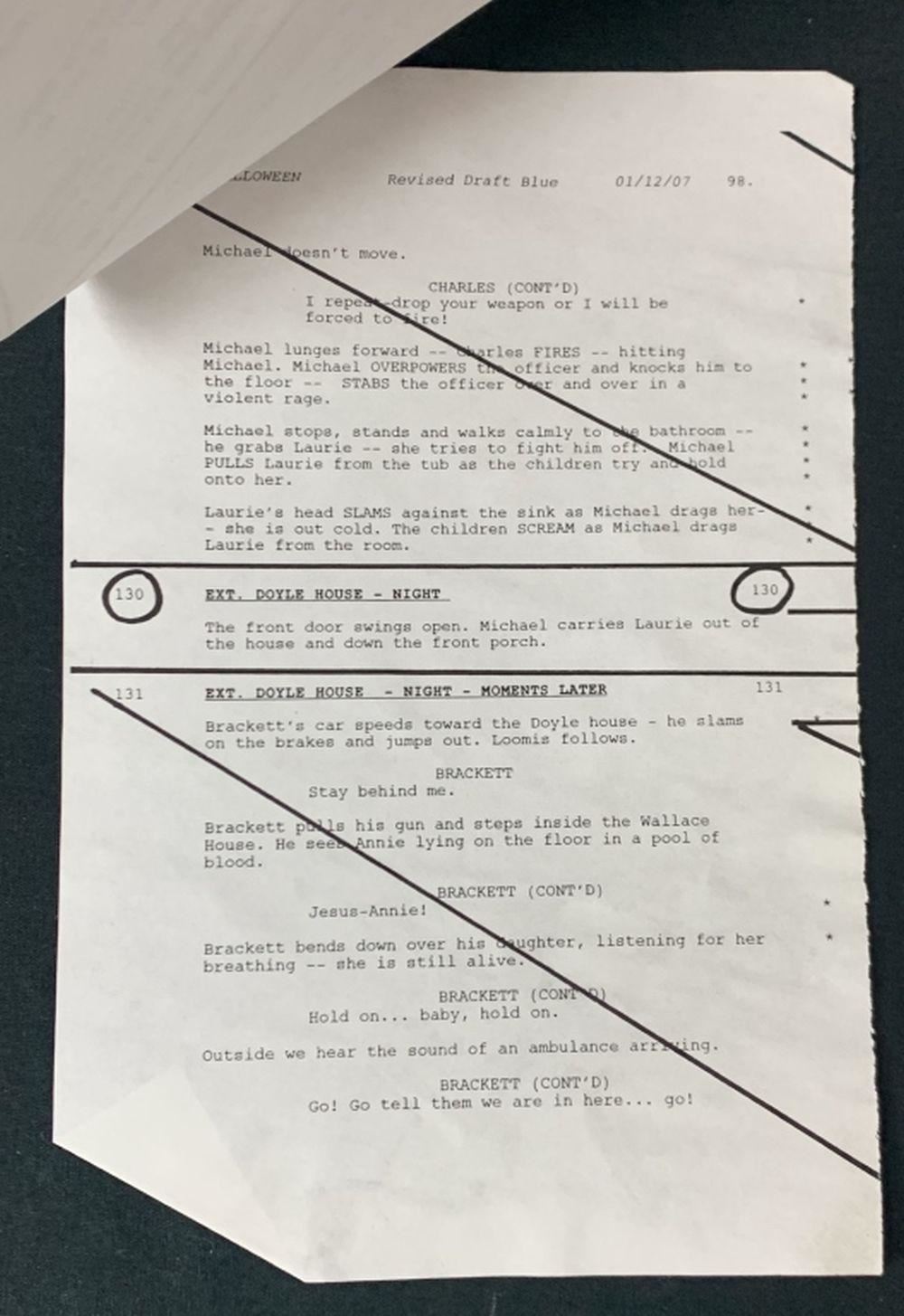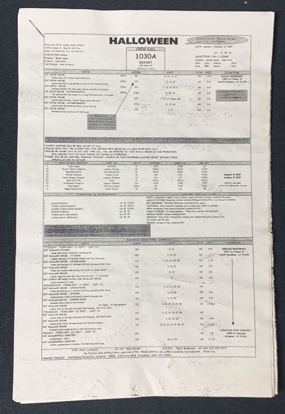Halloween (2007) - Crew Call Sheet and Revised Draft Script Page.
