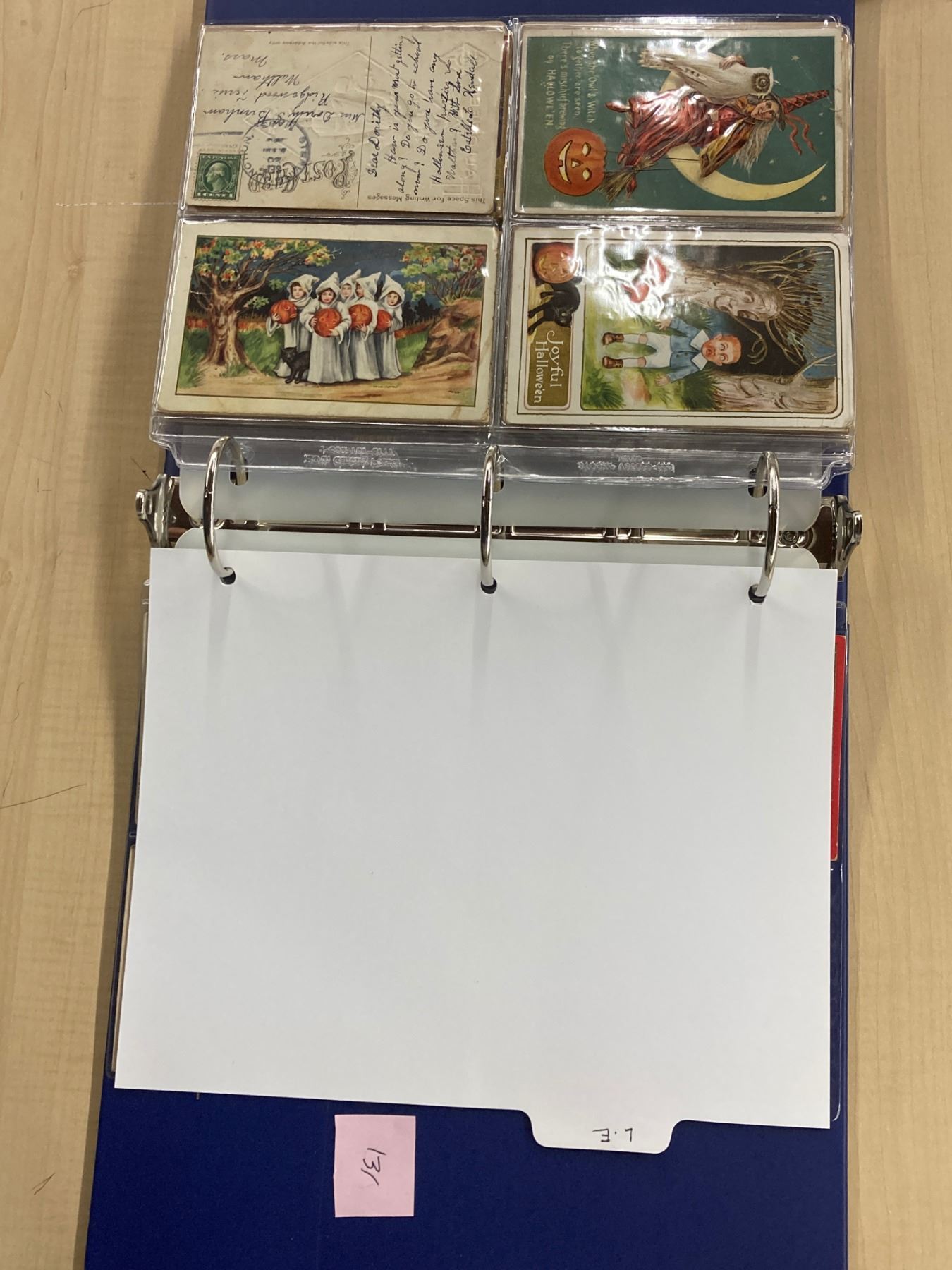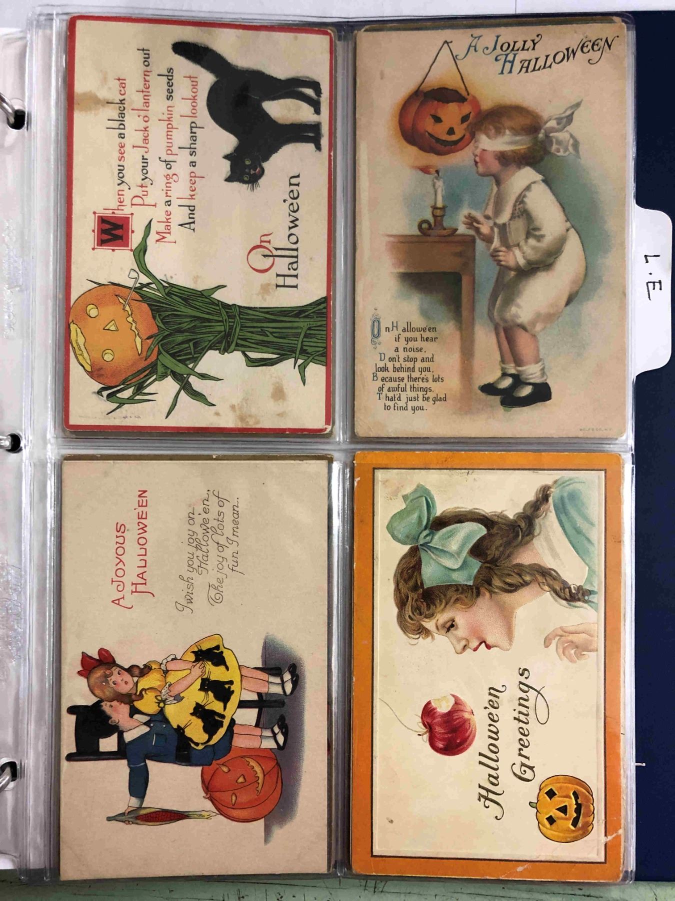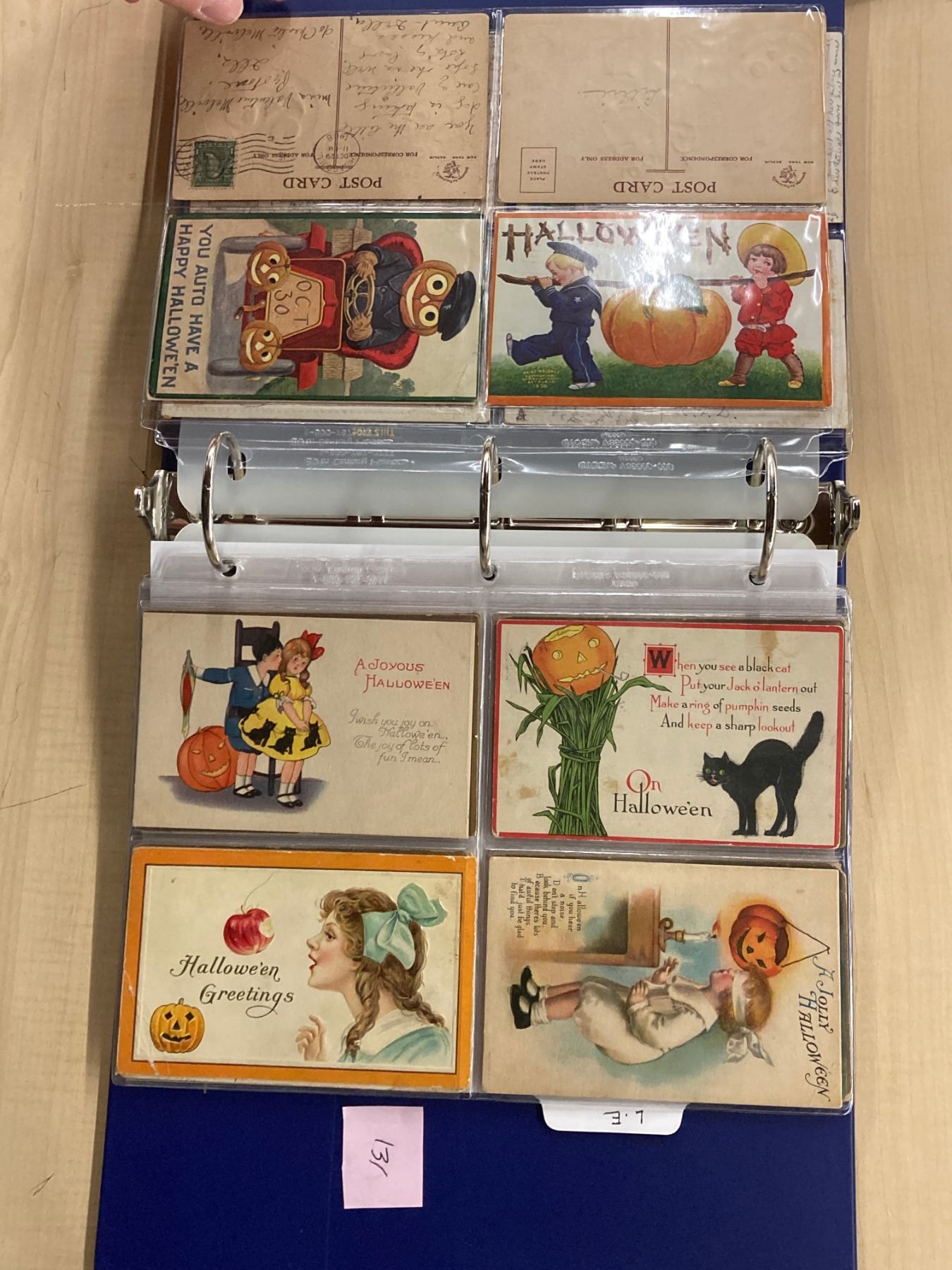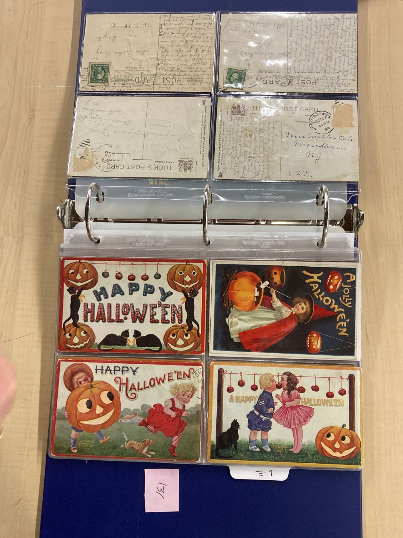 Album of Halloween postcards. Many Tucks, 1 Winsh. Pumpkins, cats, kids, witches & more. 30+ cards. Pictures shown are just a portion of the lot.