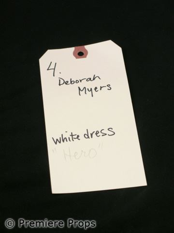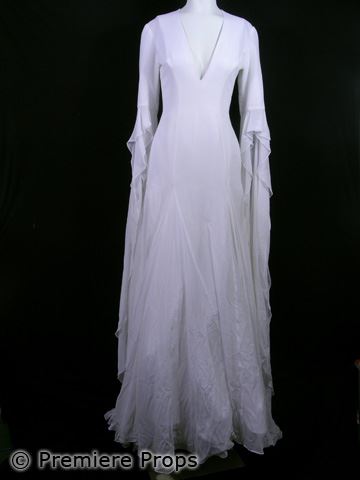 Straight out of the archives, this is Deborah Myers (Sheri Moon Zombie) long white with long lace sleeves v-neck side zip dress, white leather side zip with 3in heel boots (Screen worn/includes wardrobe tag)