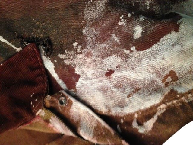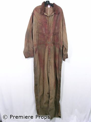 Straight out of the archives, this is Michael Myers (Tyler Mane) dark khaki zip up with front zipper pockets "Carhart" coveralls (Size 54 tall) (screen worn) (VERY BLOODY, DIRTY, punctured in multiple places, used in final scene with farm machinery) Note: the blood stains have become white in color after being in storage since 2009.