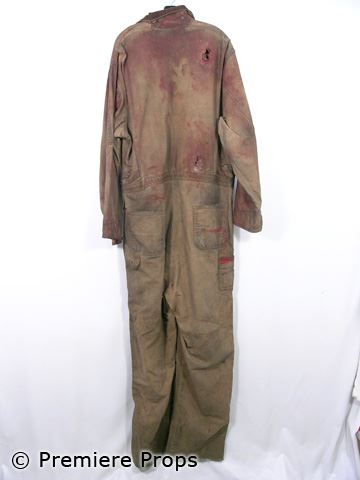 Straight out of the archives, this is Michael Myers (Tyler Mane) dark khaki zip up with front zipper pockets "Carhart" coveralls (Size 54 tall) (screen worn) (VERY BLOODY, DIRTY, punctured in multiple places, used in final scene with farm machinery) Note: the blood stains have become white in color after being in storage since 2009.